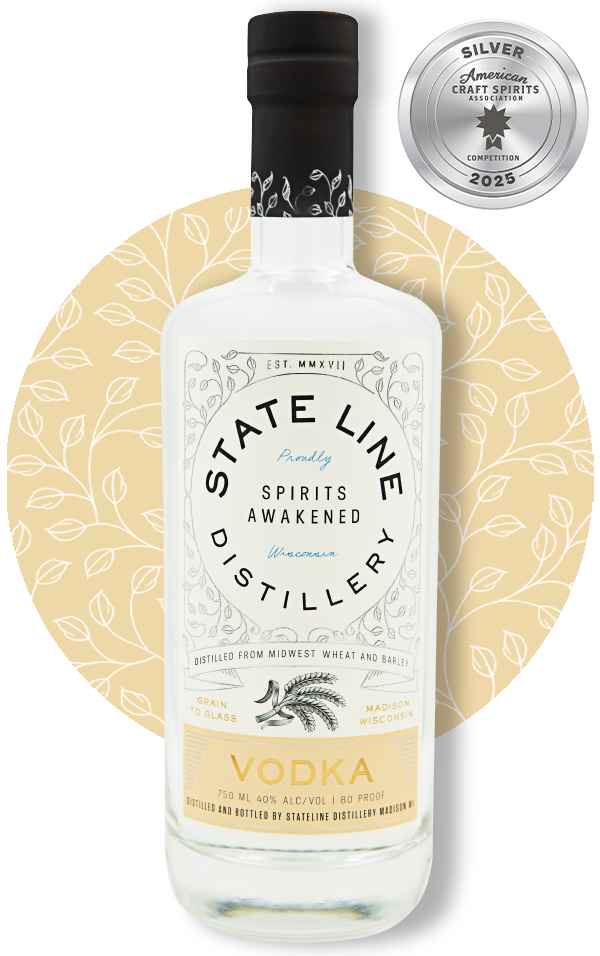 Distilled from Wisconsin wheat & barley grown in the Driftless region, State Line Vodka is smooth, round, and clean in character. Barley adds a subtle trace of sweetness, and wheat brings through a clean, uncomplicated character. Together they provide a flavor that is uniquely Wisconsin.